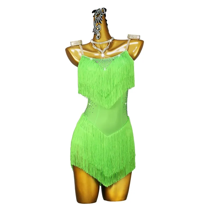 Girls Performance Skirt Fashion Adult Dance Clothes Rhinestone Tassel Ladies Latin Dress Competition Women Latin Dance Dress